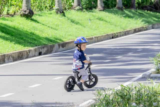 ストライダーでは、蹴り出して軌道に乗ってからは体でバランスを取りながら運転することになります。