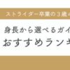 対象年齢や対象身長の確認はもちろん、子どもが「これなら乗れるかな?」と思えるサイズ=怖くないもの、を選ぶのが良いかと感じました。