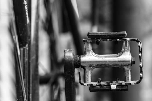 2輪車でバランスを取る感覚が掴めたら、慣れた車体にペダルを装着。